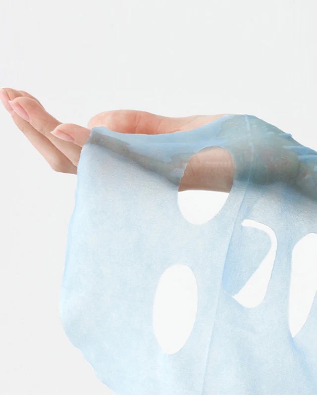 Mască tip șervețel realizată din cupro și tensel, materiale vegane cu absorbție ridicată, care aderă perfect la conturul feței și eliberează uniform esența bogată în agenți calmanti și drenanti. Formula cu azulene și extract de agavă reduce roșeața și mâncărimea, combate edemele și previne deshidratarea, întărind în același timp pereții capilari pentru a limita apariția cuperozei.