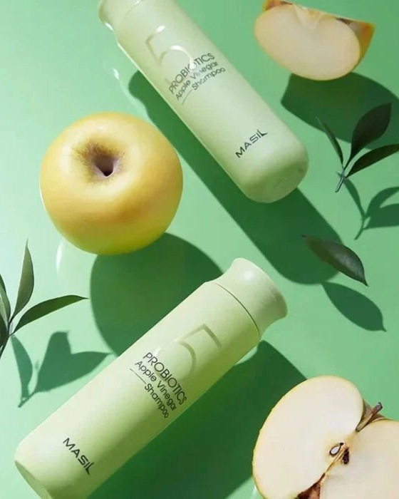 Masil 5 Probiotics Apple Vinegar Shampoo – șampon purificator cu oțet de mere și probiotice pentru scalp sănătos și păr fără mătreață
